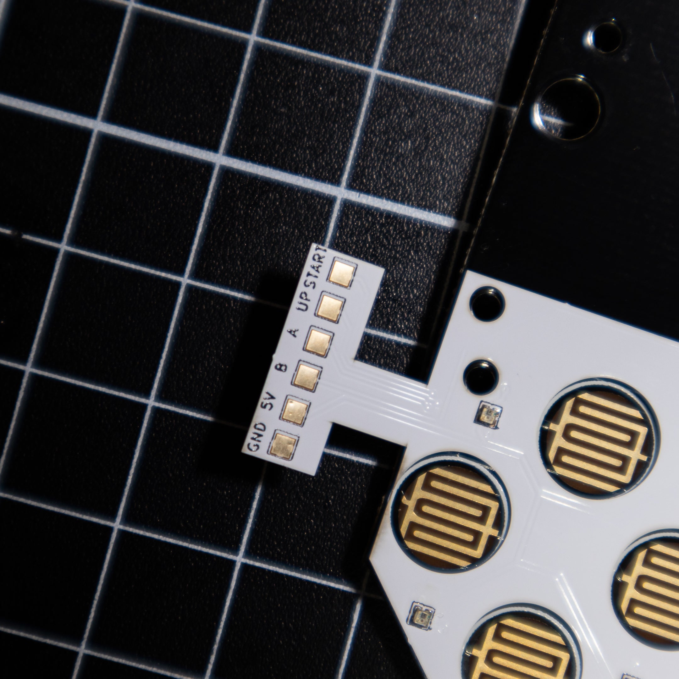 Solder to the diodes at the back of the control board and the control pin out. Solder to the capacitor for power.