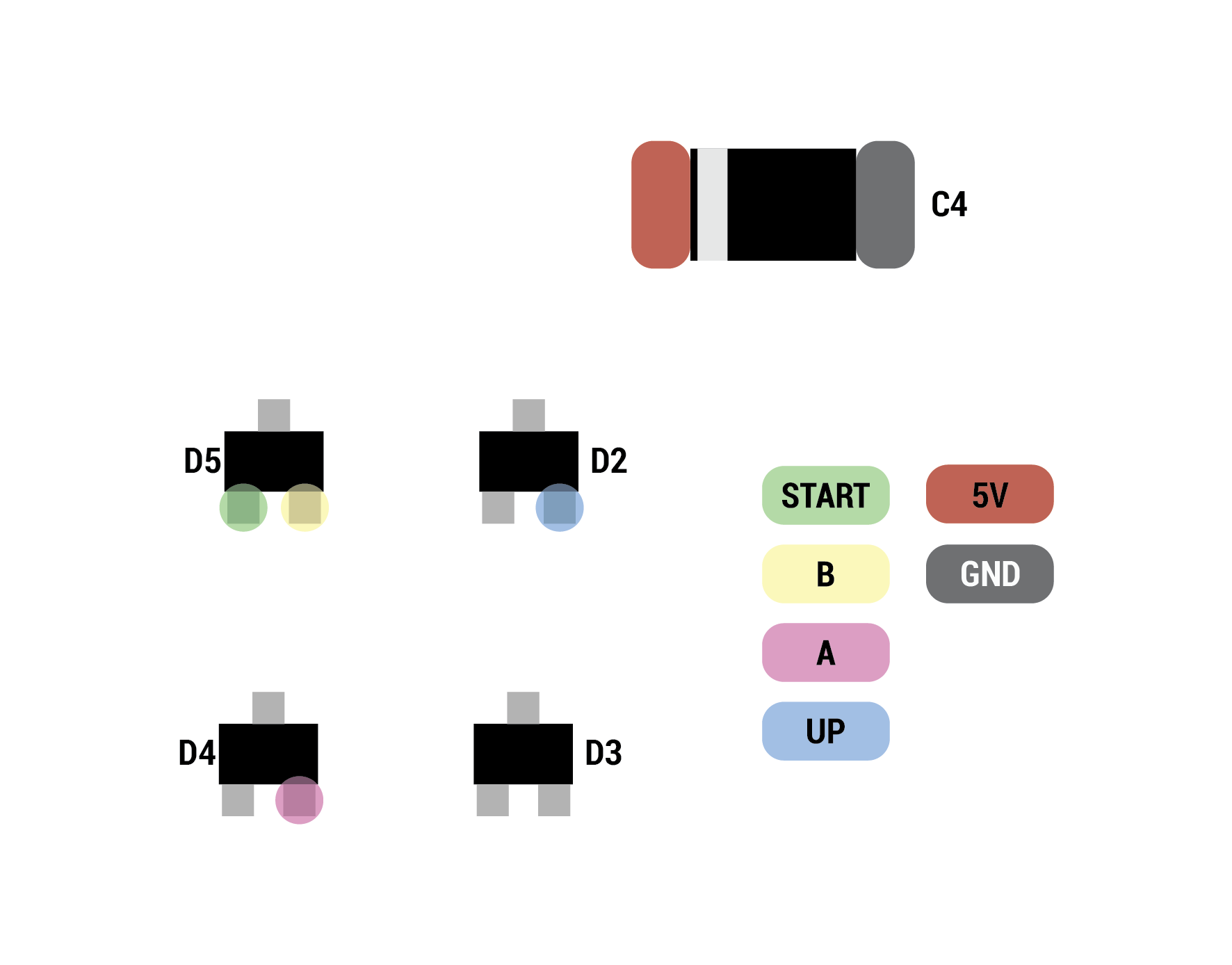 - Hold down start and tap a to switch colours